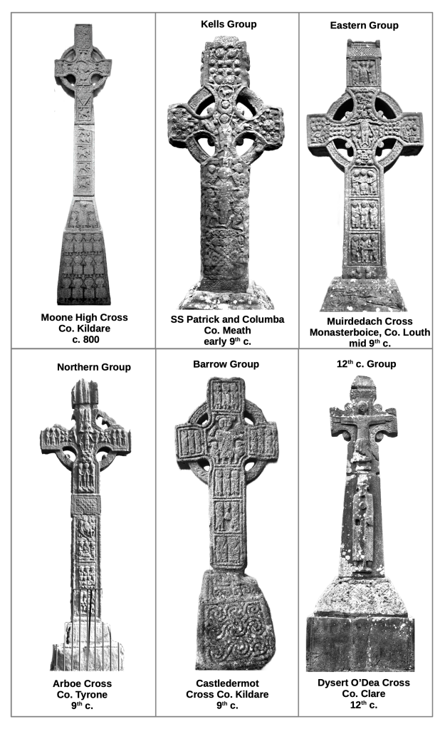 Figure 3: Moone High Cross (author), Kells (author), Muirdedach (author), Arboe (motorhomewanderings), Castledermot (author), Dysert O’Dea (author)
